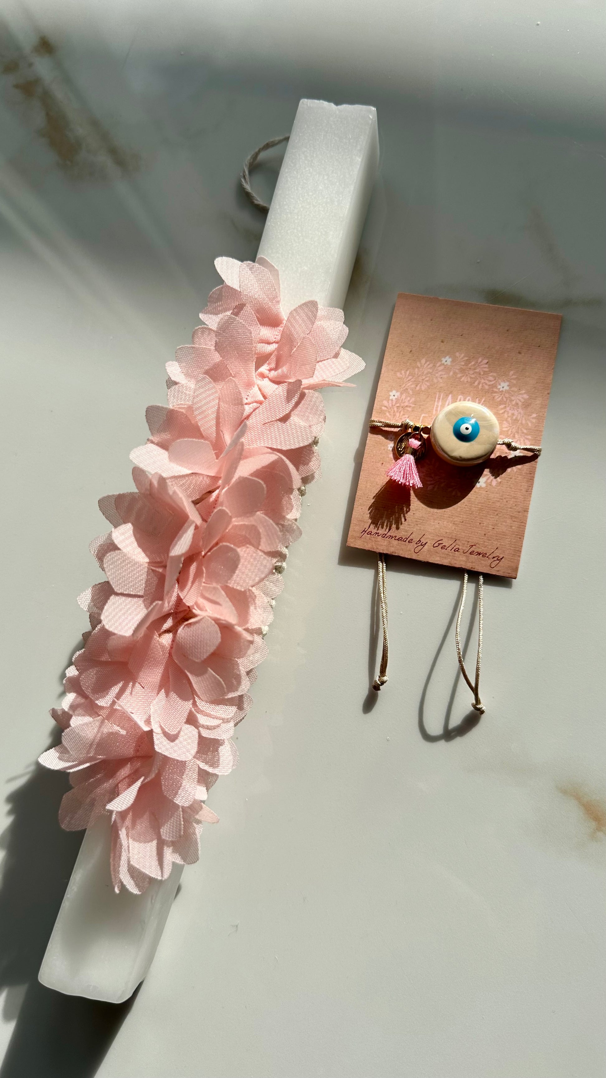 Δωρο μαζί με την λαμπάδα ένα χειροποίητο βραχιολι με κεραμικό μάτι και στοιχεία από ανοξείδωτο το ατσάλι.