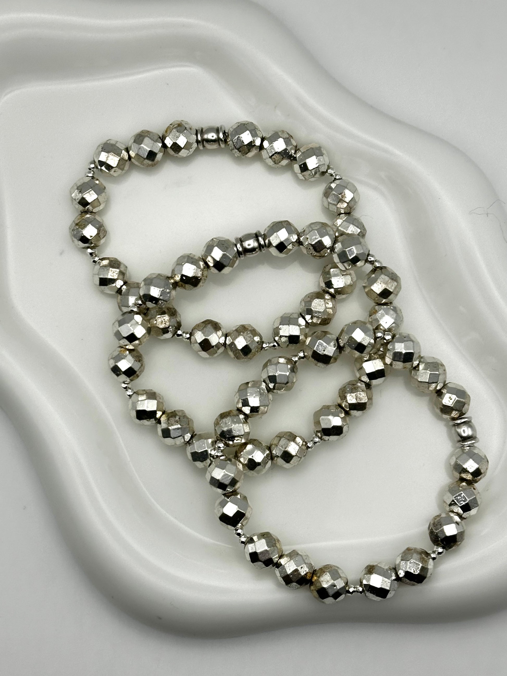 Ελαστικό χειροποίητο βραχιόλι φτιαγμενο απο ασημι πολυγωνες πετρες αιματίτη που αντανακλούν το φως και χαρίζουν διακριτική λάμψη. Ο minimal και κομψός σχεδιασμός του το καθιστά ιδανικό για καθημερινή χρήση αλλά και για πιο ιδιαίτερες εμφανίσεις. Φοριέται άνετα μόνο του ή σε συνδυασμό με άλλα βραχιόλια για layered αποτέλεσμα. Διαχρονικό αξεσουάρ που ταιριάζει σε κάθε στυλ.